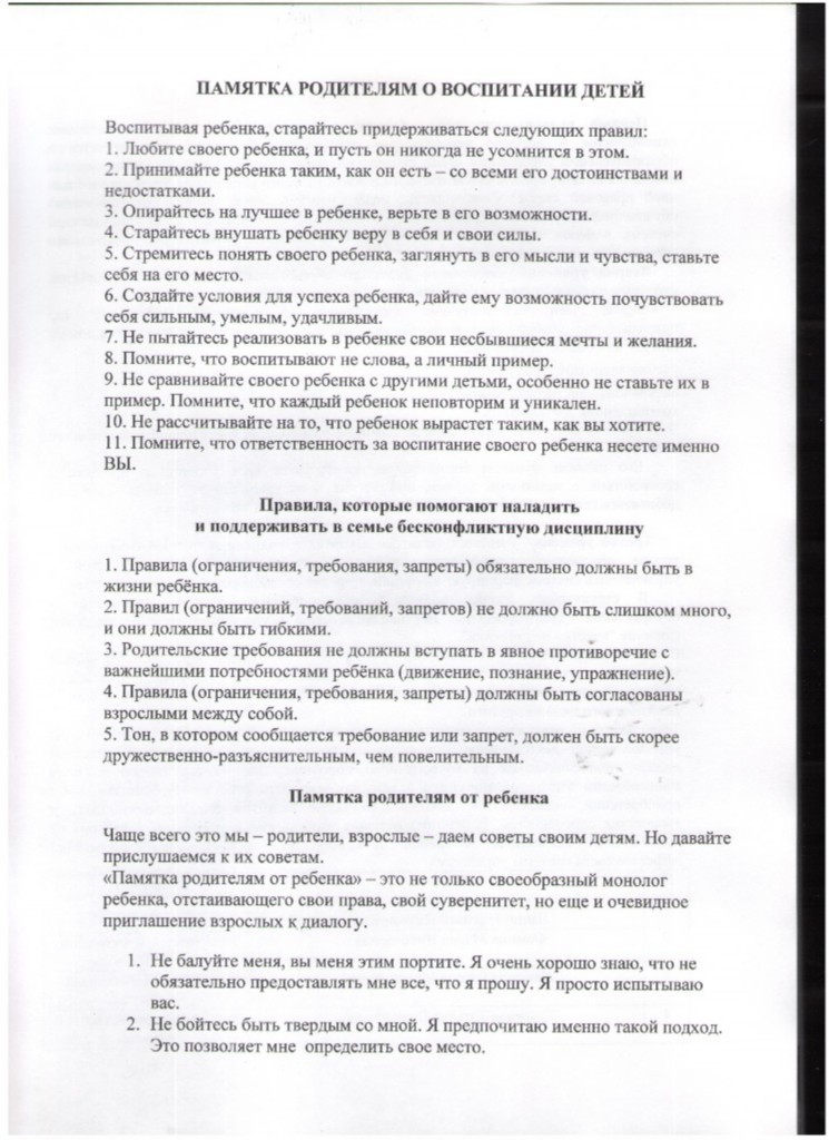 Памятка для родителей