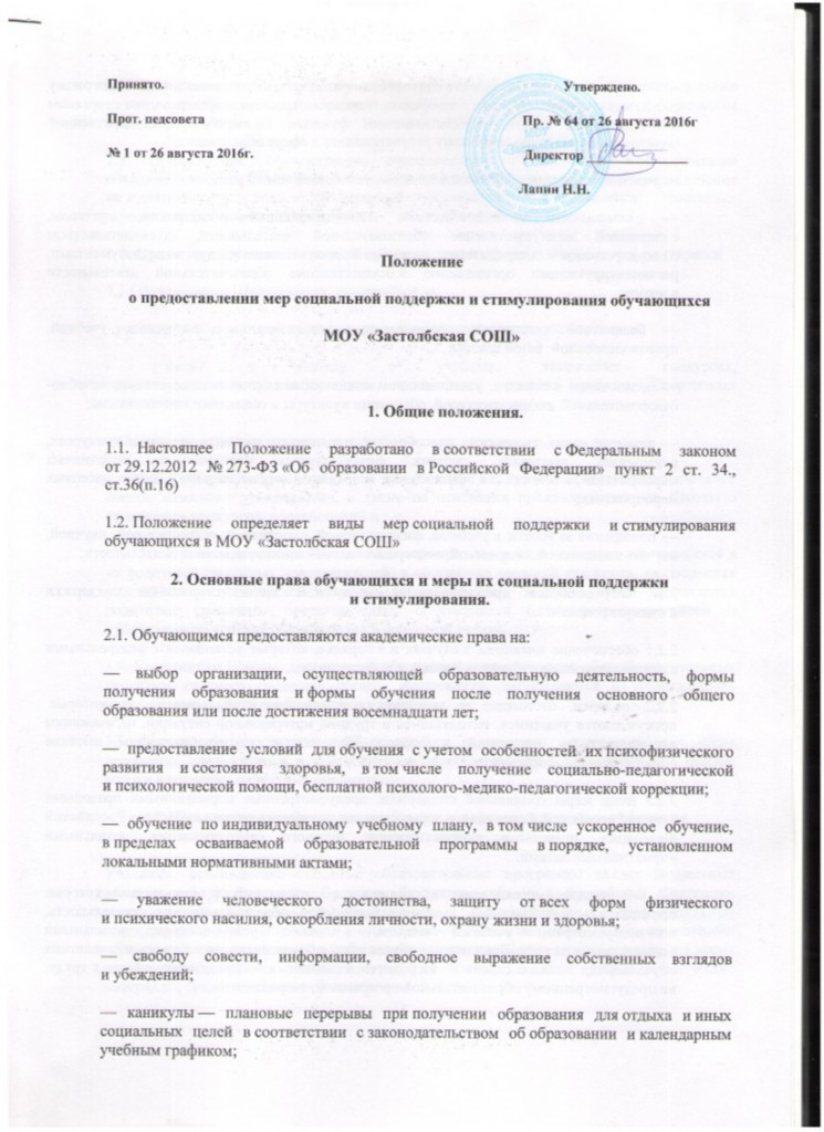 МОУ "Застолбская СОШ" стипендии и иные виды материальной поддержки обучающимся не оказывает.